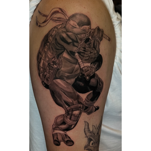 Nolan is a versatile tattoo artist with over eleven years of experience. He specializes in a wide range of styles, including anime, American traditional, neo-traditional, and black and grey realism. His expertise also extends to blackout/blackwork, pepper shading, and dotwork, showcasing his adaptability and artistic range.